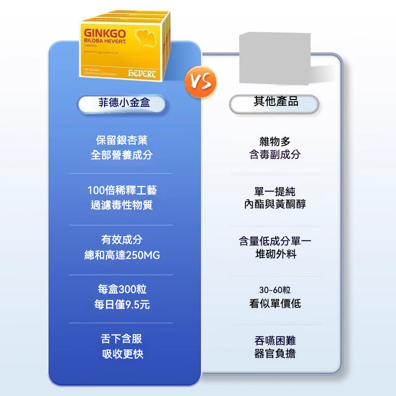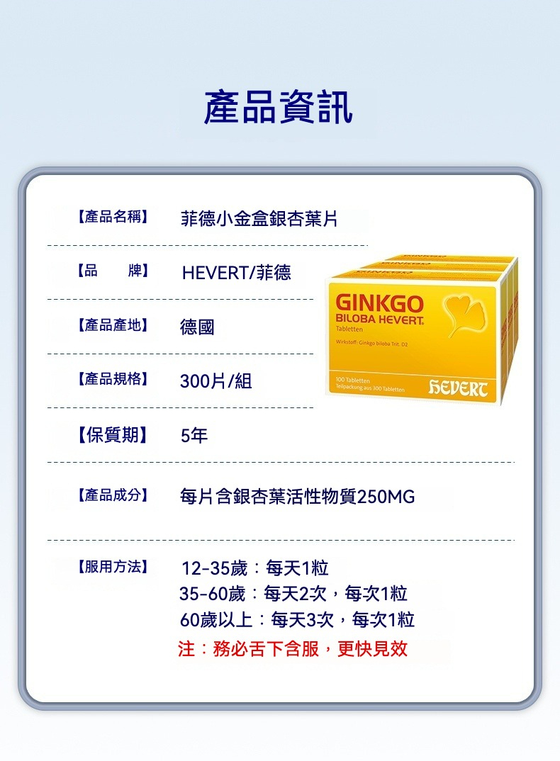 HEVERT菲德 銀杏葉片提取物 老年健忘、唸書補腦 保健品 300片