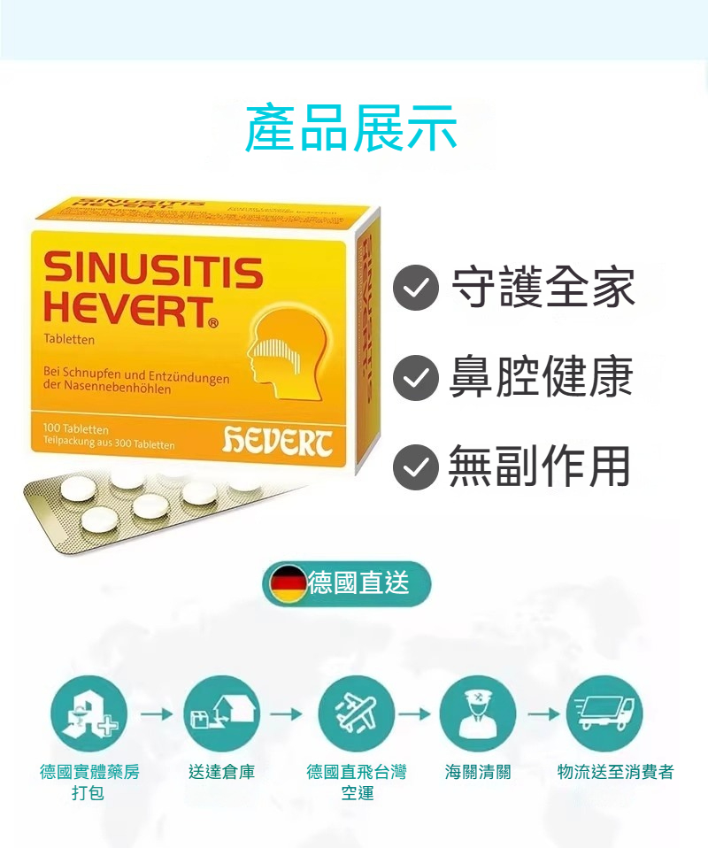 德國Hevert菲德 通鼻緩解鼻竇炎頭痛鼻塞流感片 300粒