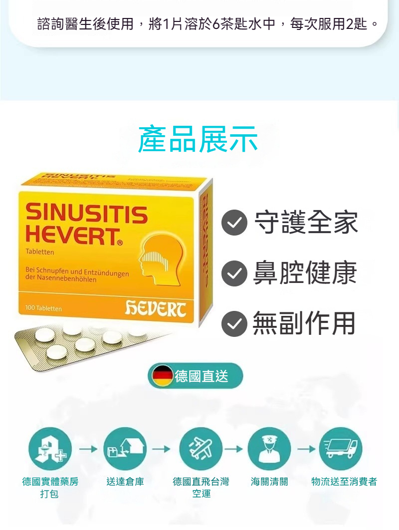 德國Hevert菲德 通鼻緩解鼻竇炎流感片頭痛鼻塞 100片